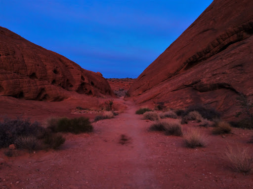 Until finally the sky has become the most astonishing shade of blue; a color you’d expect from the ocean near a tropical island, not from the middle of the desert. You don’t think it can get any bluer, until you turn a corner and find yourself passing between dark red rocks, over dark red earth, that provide the perfect contrast.
