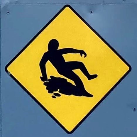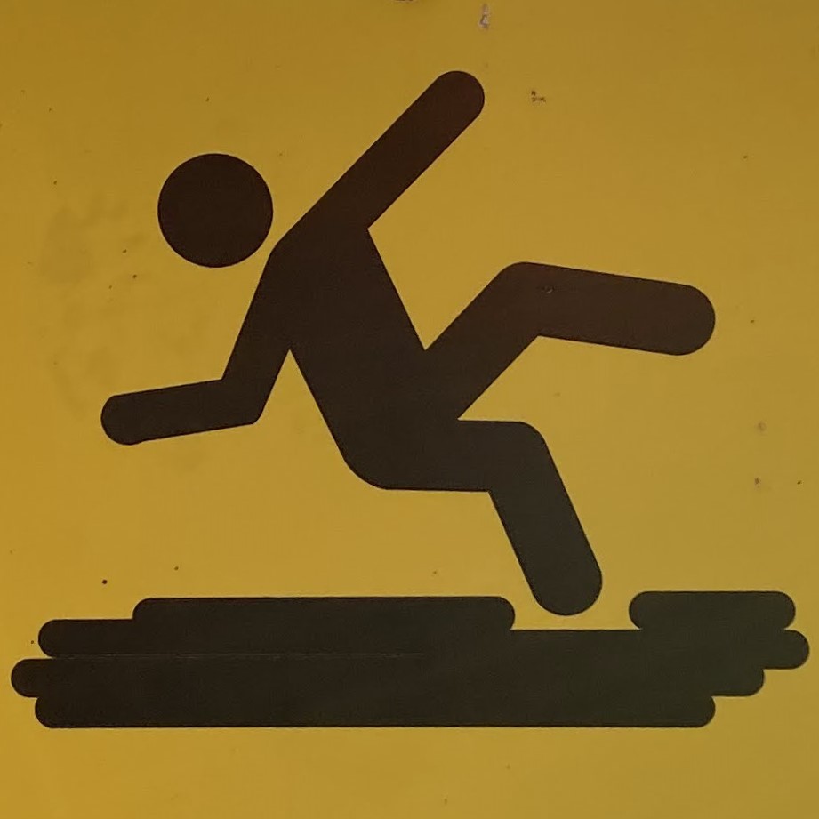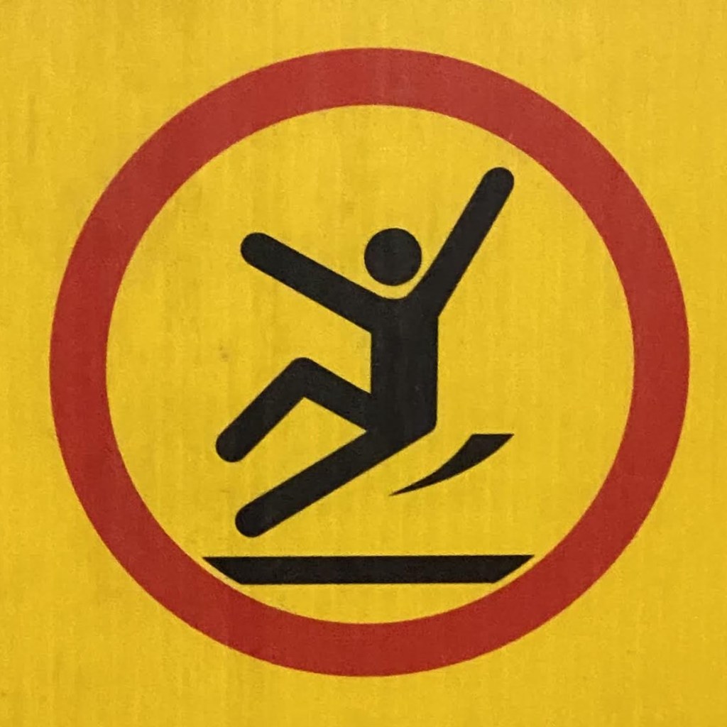 I’ve been taking pictures of warning signs, particularly ones with stick figures, for a long time, and I’ve accumulated enough at this point that I think it’s time to share. I’m starting with one of the biggest categories, Slips.