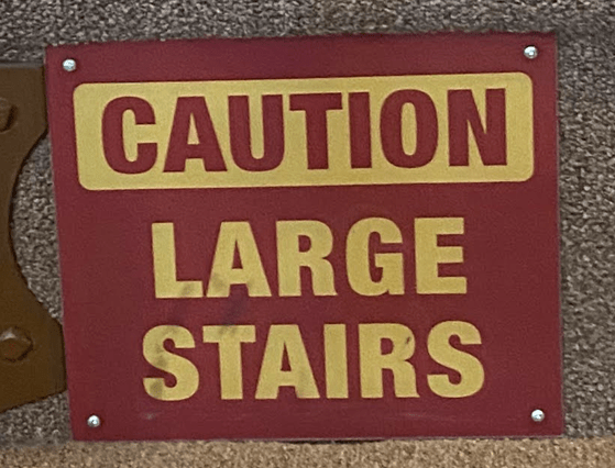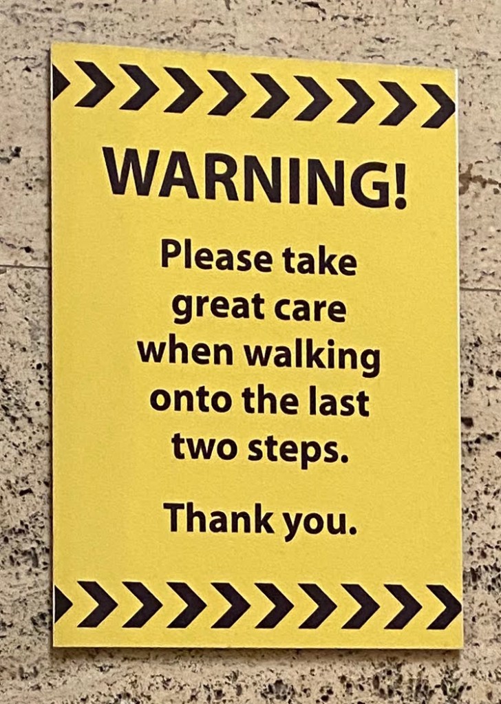 For now, I’ll leave you to ponder this written trip hazard sign, which looks unsettlingly like a ransom note, or possibly a threat: