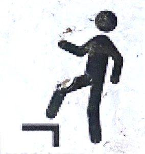 As I mentioned in the previous post on Slips, the key difference between a Slip and a Trip (based on my informal survey of sign figures) is that you slip backward and trip forward. Slips are far more common than Trips, but there’s still more than enough in this category to keep my attention.