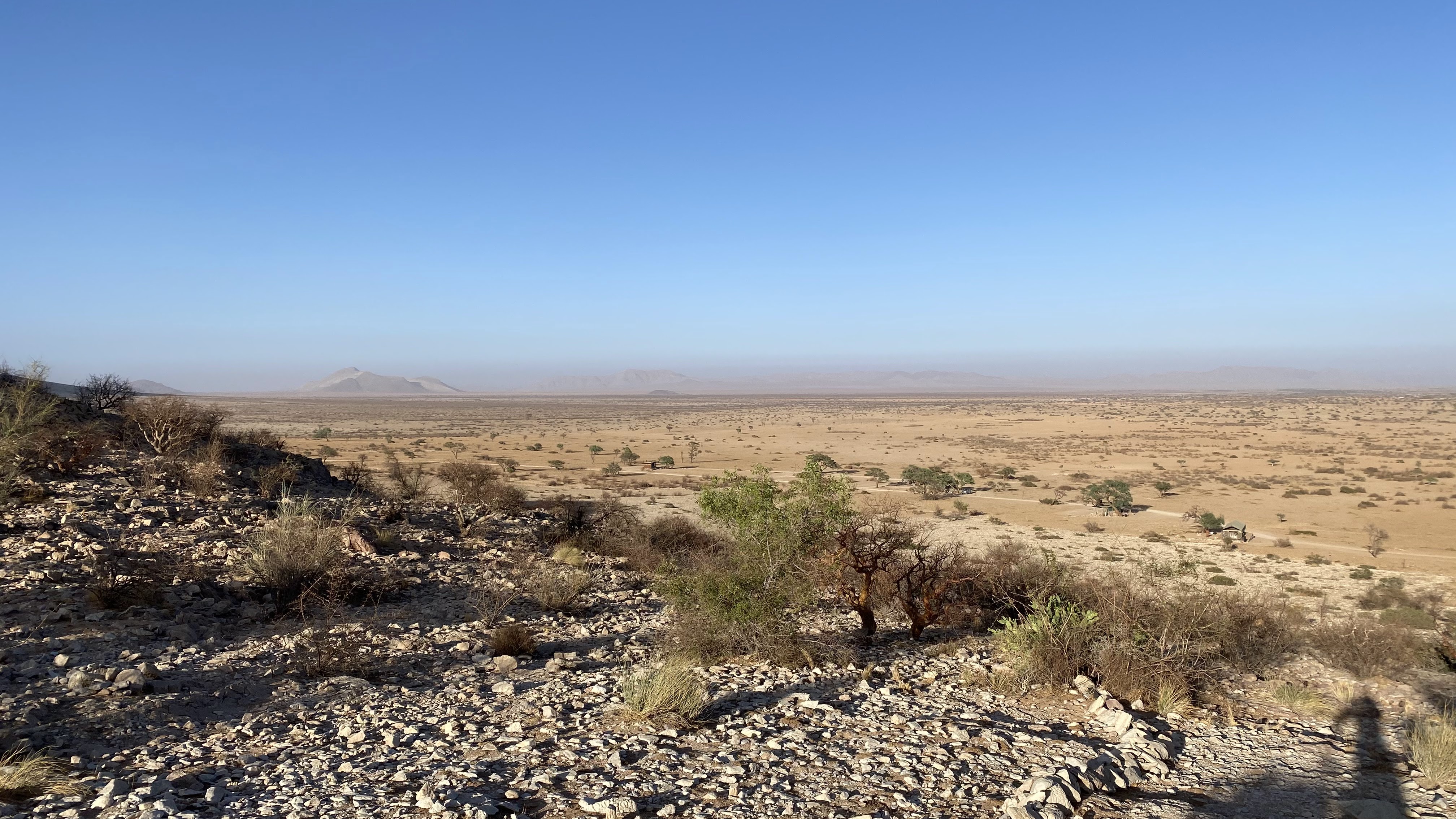 Side note: don’t park under acacia trees. The local name for them is “camel thorn” and those thorns can go right through a tire, let alone your shoe.
