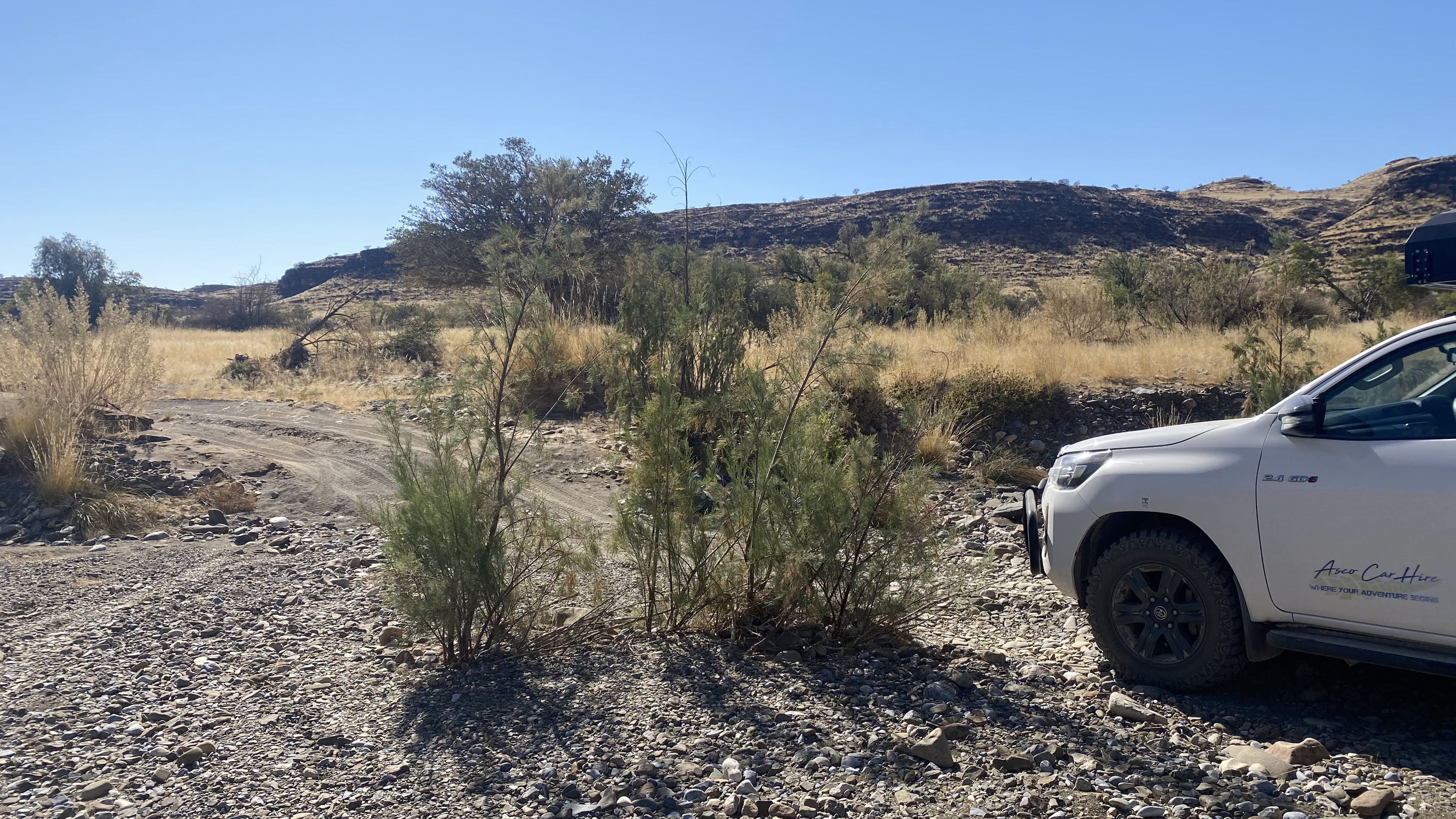 Shameless plug without any sort of kickback: Asco Car Hire in Windhoek is great. We’ve rented from them both times and they’re helpful, fair, reasonably priced, and their vehicles are well-maintained. I do have two very strong suggestions (for any car rental but especially here):
