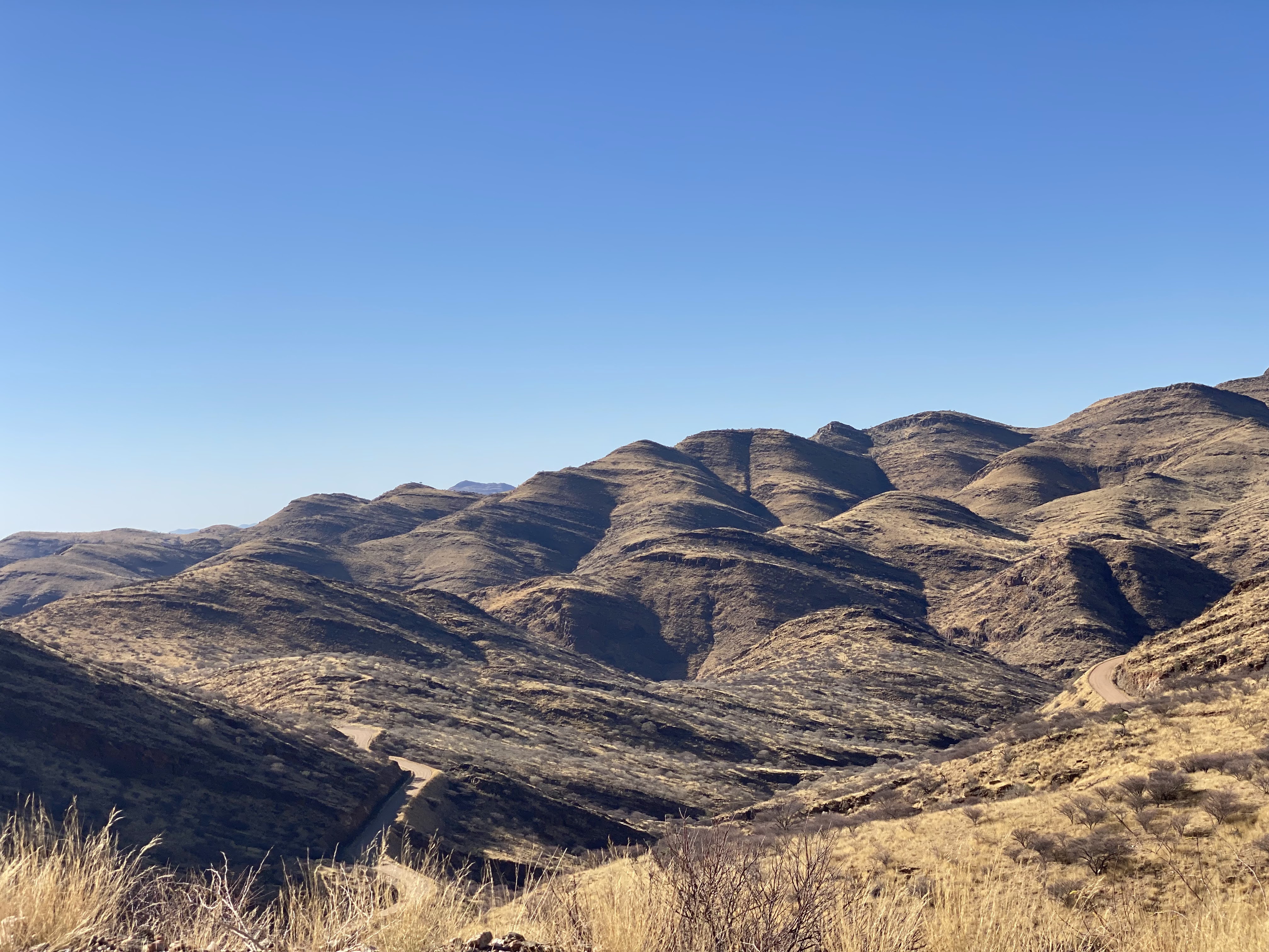 Oh, and there’s no way to estimate the quality of a gravel road in advance, since it’s entirely down to how recently the road scraper has visited and whether it rained anywhere in the region since then. You might guess that a C road gets scraped a bit more often than a D road, and it probably does, but there are many kilometers of road and not very many scrapers, so it’s largely down to luck. The only exceptions are B roads, which are usually paved but don’t go to the interesting places, and F roads, which have never heard of a scraper and are likely to consist mostly of oryx trails and usually-dry riverbeds.