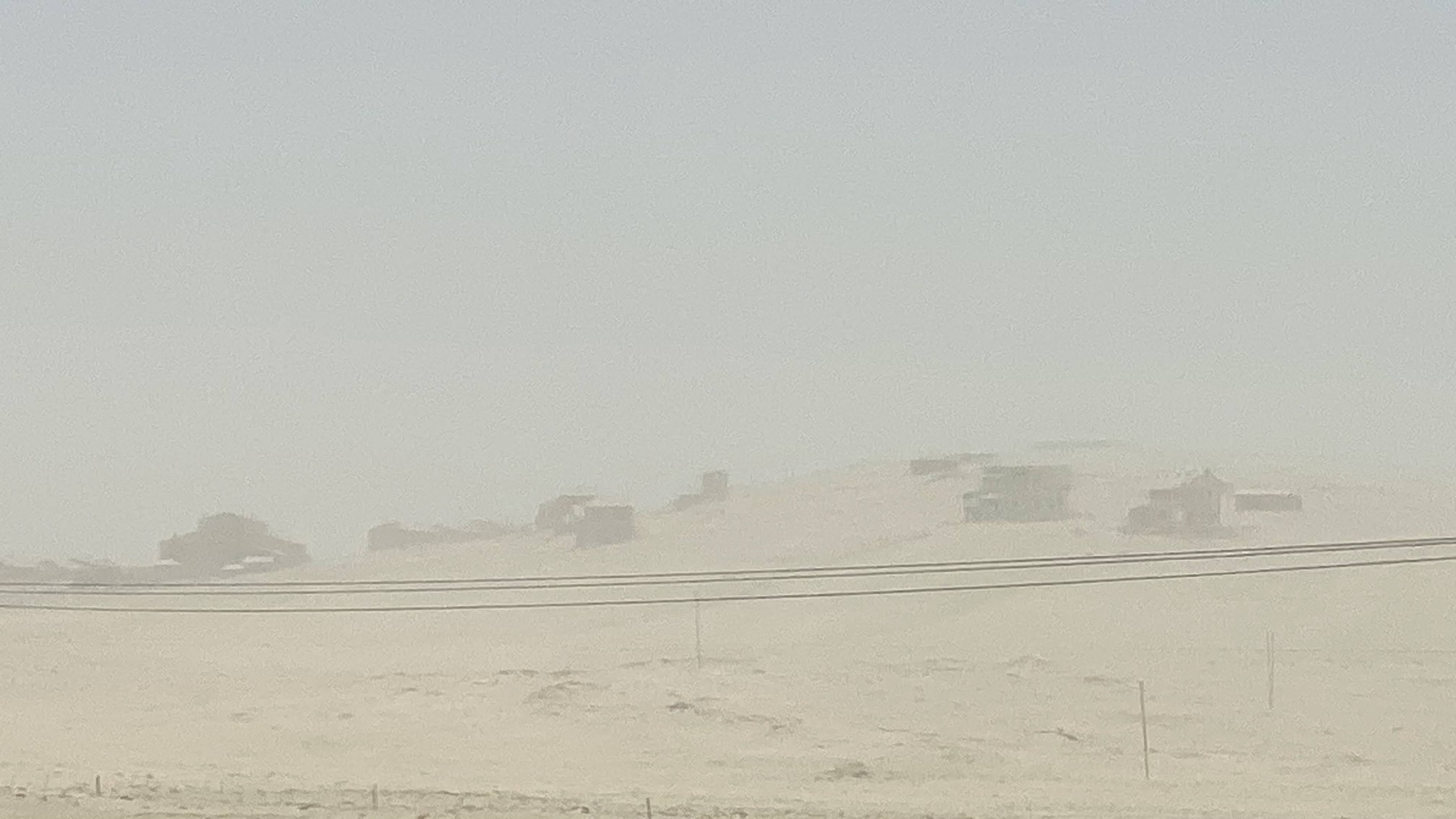Sand on the road is one thing, but if the sand starts blowing, you stop driving. Pull over (safely) and batten down the hatches to ride out a sandstorm.