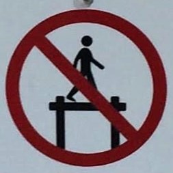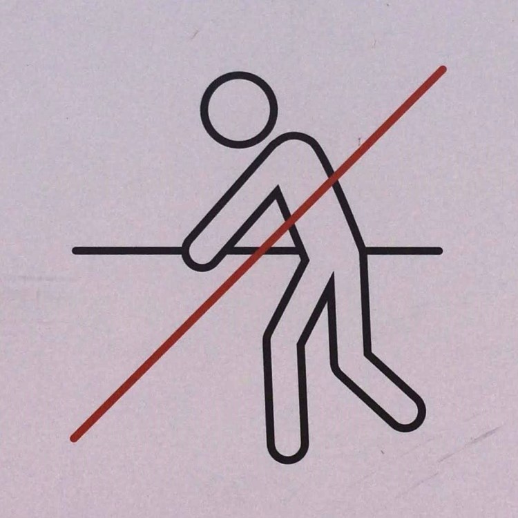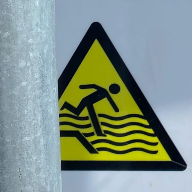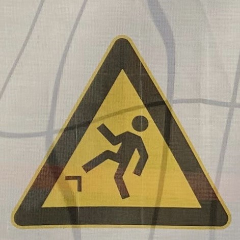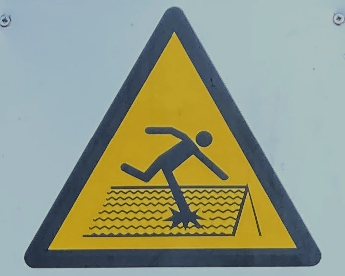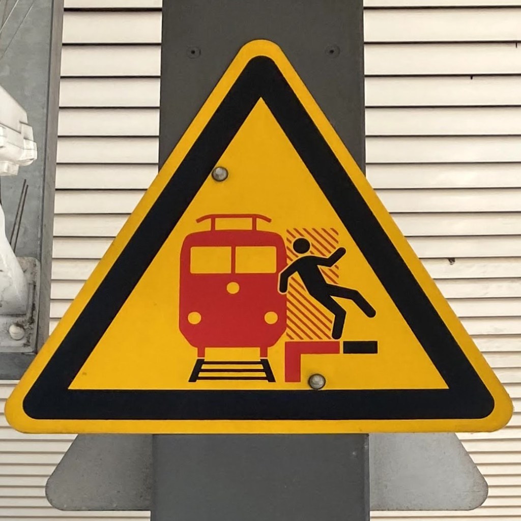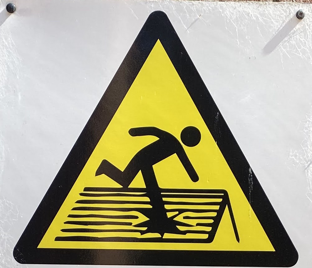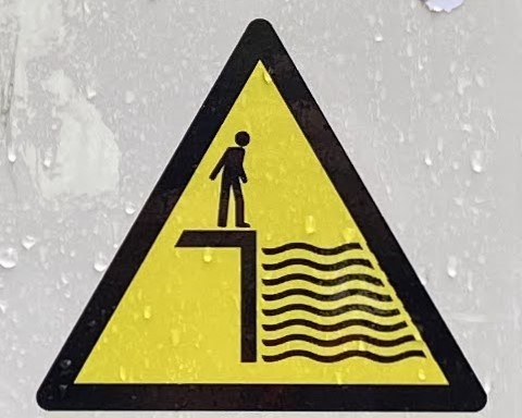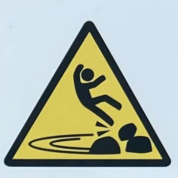 It’s hard to choose where to start with this category! As with Slips and Trips, we’ll encounter some repeated figures in different situations, and a wide variety of scenarios. Let’s begin at the beginning, with what I like to call the Pre-Fall. These are the figures who are courting danger, and these signs often appear a little distance back from the fall hazard, or sometimes next to a more graphic Fall sign.