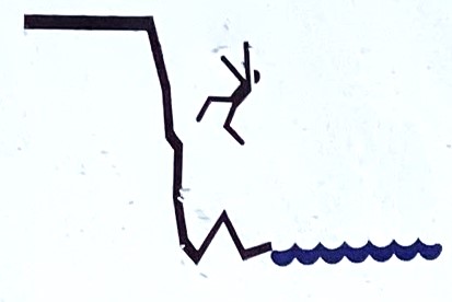 Now that we’ve arrived at actual falls, let’s explore the various kinds of falls. You can fall feet-first in a slipping sort of way, like the figure above: