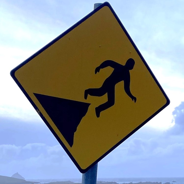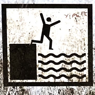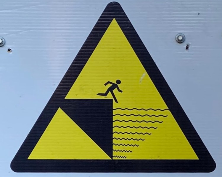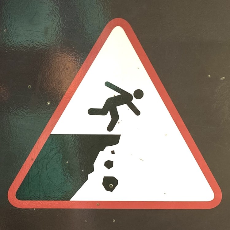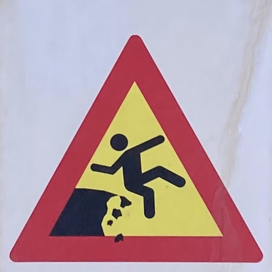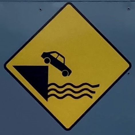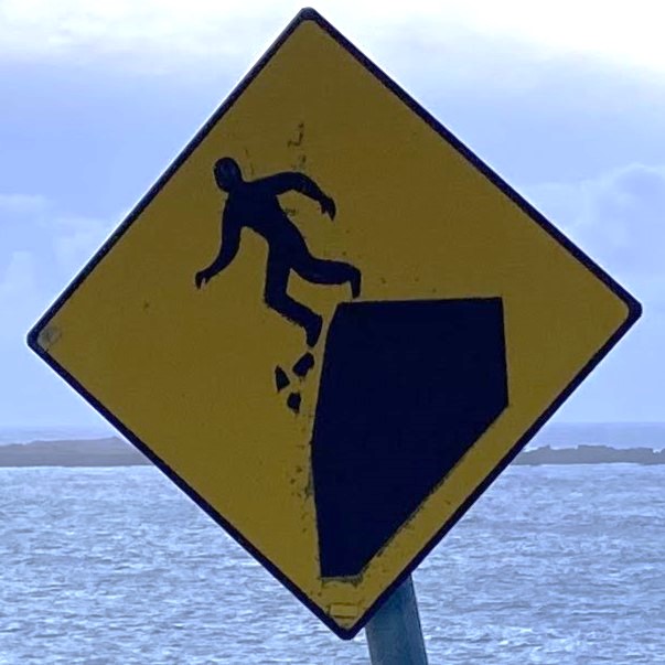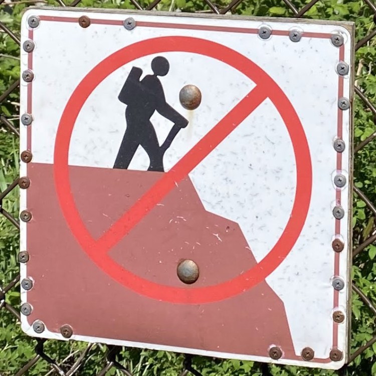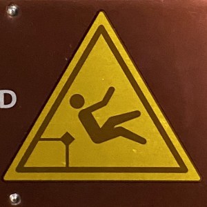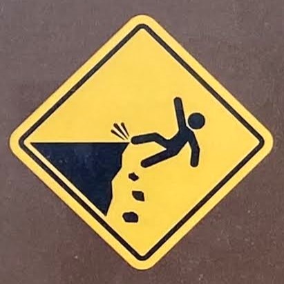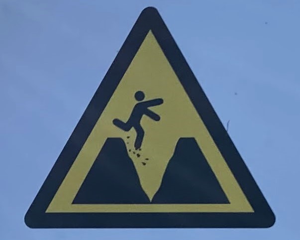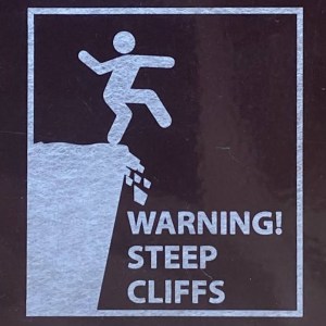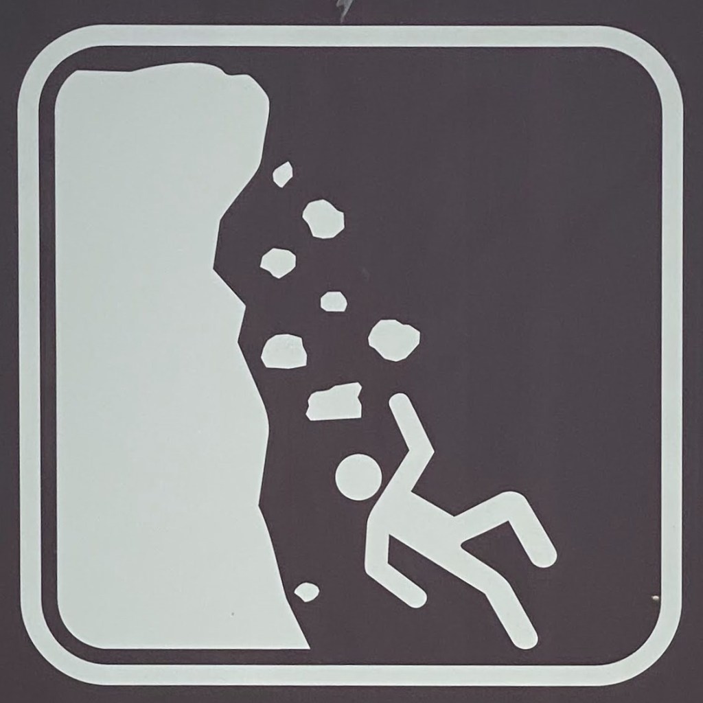 One note before we jump in (pun intended): Fall signs tend to be placed pretty close to cliffs and edges. Since I have a healthy respect for heights and prefer not to venture too close to the dangerous drop indicated on the signs, many of these were photographed at a distance, so I apologize for the blurry/pixelated ones.