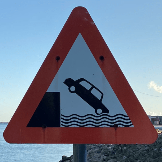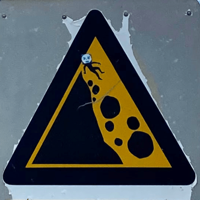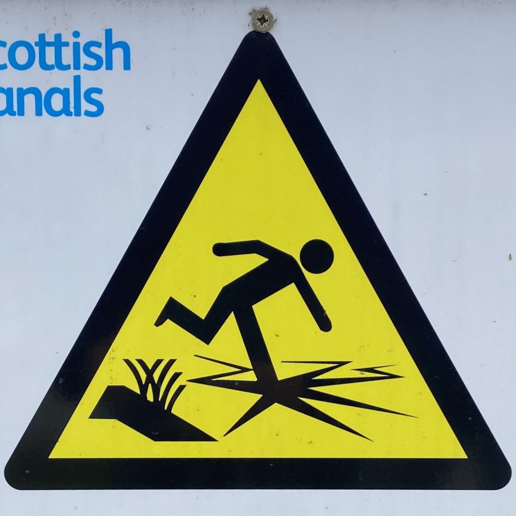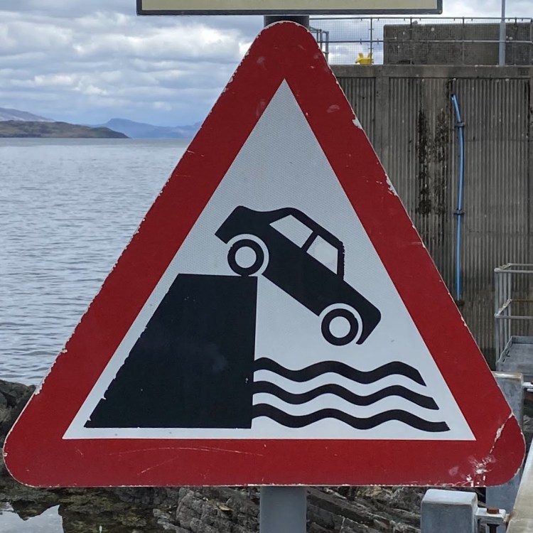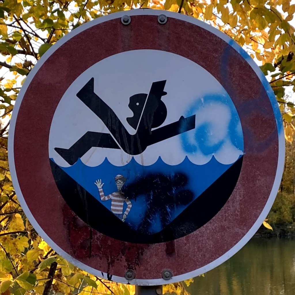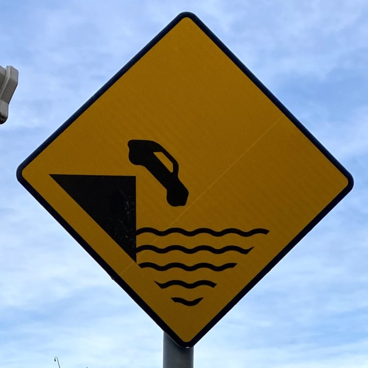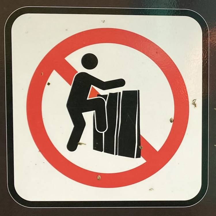 One note before we jump in (pun intended): Fall signs tend to be placed pretty close to cliffs and edges. Since I have a healthy respect for heights and prefer not to venture too close to the dangerous drop indicated on the signs, many of these were photographed at a distance, so I apologize for the blurry/pixelated ones.