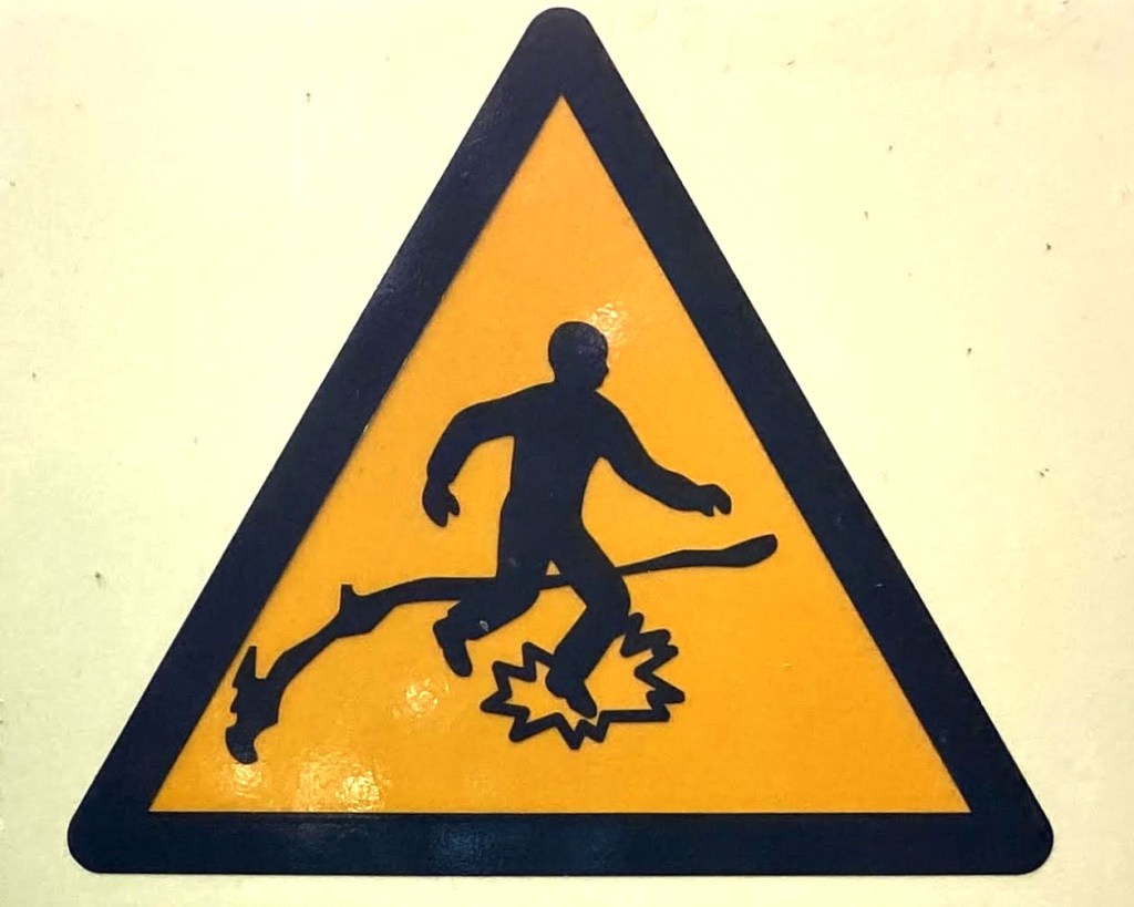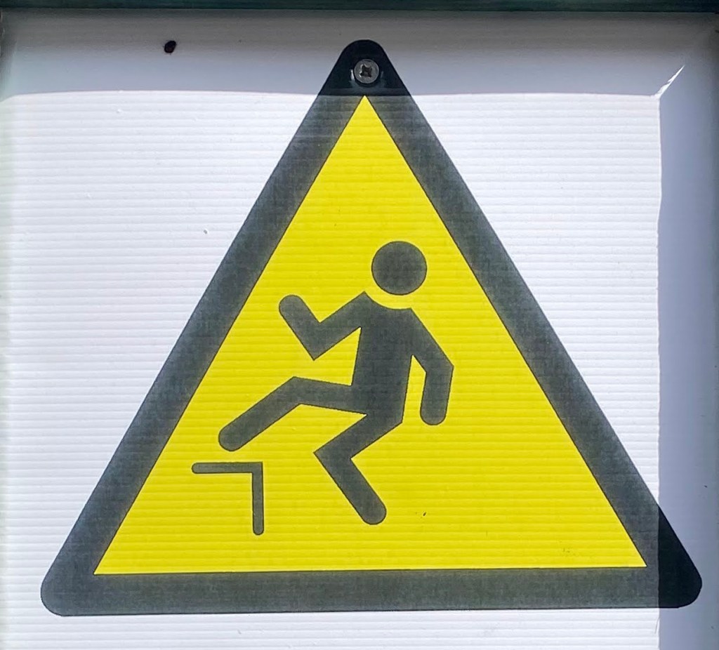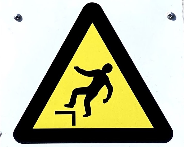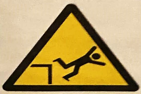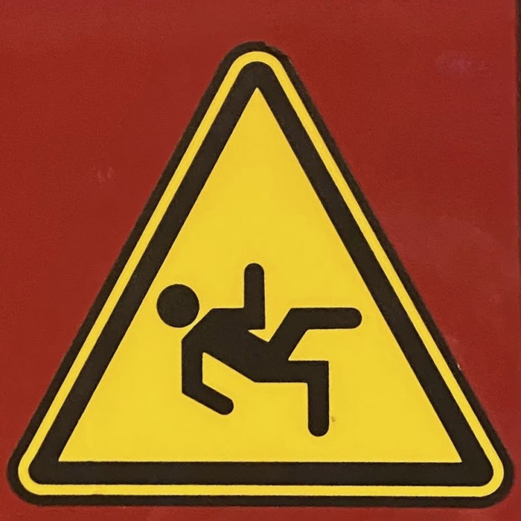 When I started this project, I was sure that Slips would be the largest category, and it’s true that there are a whole bunch of Slip signs out in the world (most professional mops seem to come with one). Falls, however, might be even bigger, because while the signs aren’t quite as widespread, it turns out there are a lot of ways to fall. And I mean a LOT.