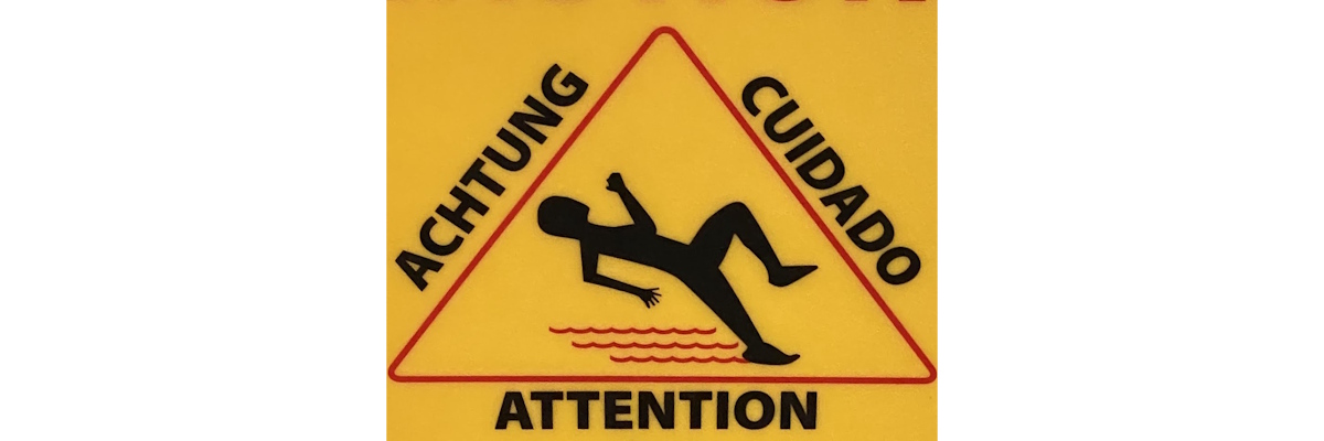 I’ve been taking pictures of warning signs, particularly ones with stick figures, for a long time, and I’ve accumulated enough at this point that I think it’s time to share. I’m starting with one of the biggest categories, Slips.