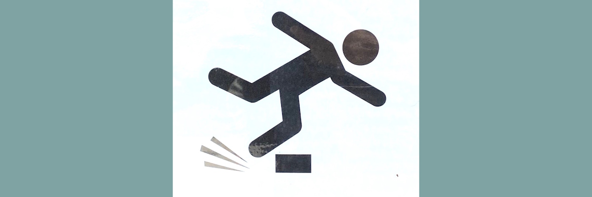 As I mentioned in the previous post on Slips, the key difference between a Slip and a Trip (based on my informal survey of sign figures) is that you slip backward and trip forward. Slips are far more common than Trips, but there’s still more than enough in this category to keep my attention.